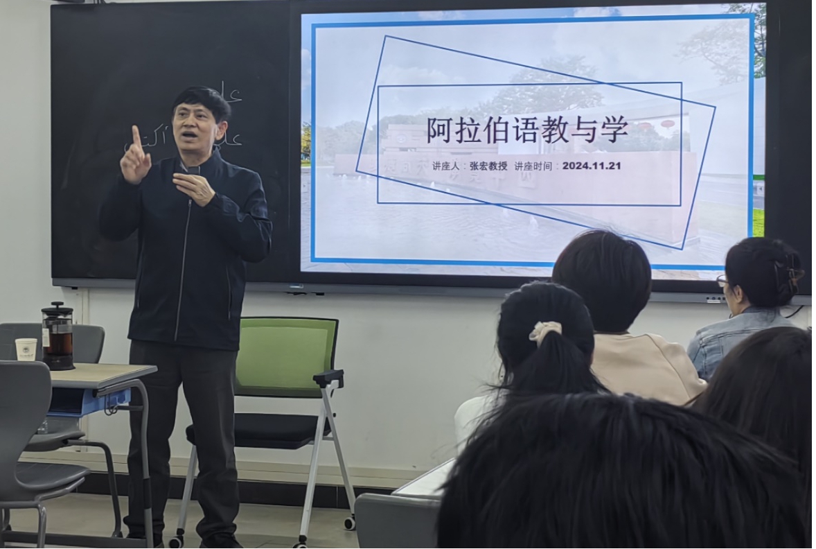 2024年11月21日晚,阿拉伯语系邀请北京外国语大学张宏教授为全系师生带来了一场关于阿拉伯语学习与职业发展的精彩讲座,围绕“如何学阿语”、“为何学阿语”和“阿语就业前景”三个核心议题,分享了他多年的教学与研究经验。