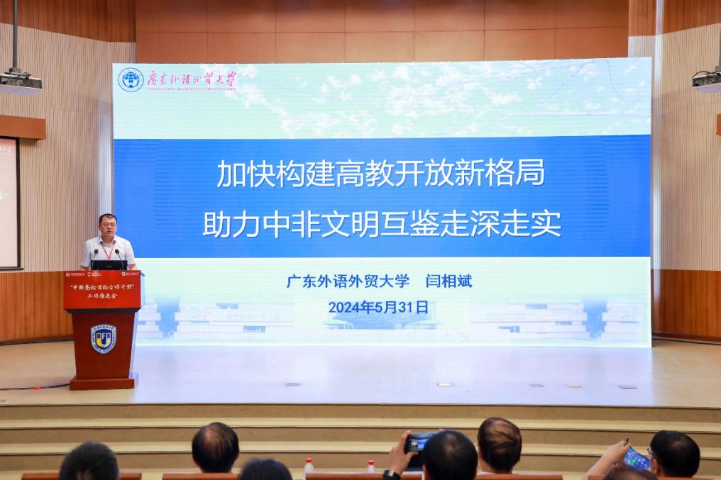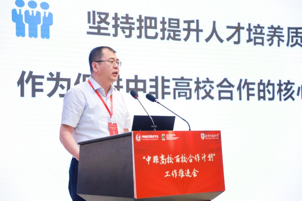 在高校代表发言环节,闫相斌作题为“加快构建高教开放新格局, 助力中非文明互鉴走深走实”的报告,从人才培养模式、教研科研成果、产学研一体化机制和国际中文教育四个方面总结了公司对非合作的主要模式和成果,展望了公司与非洲国家在教育领域的合作前景。