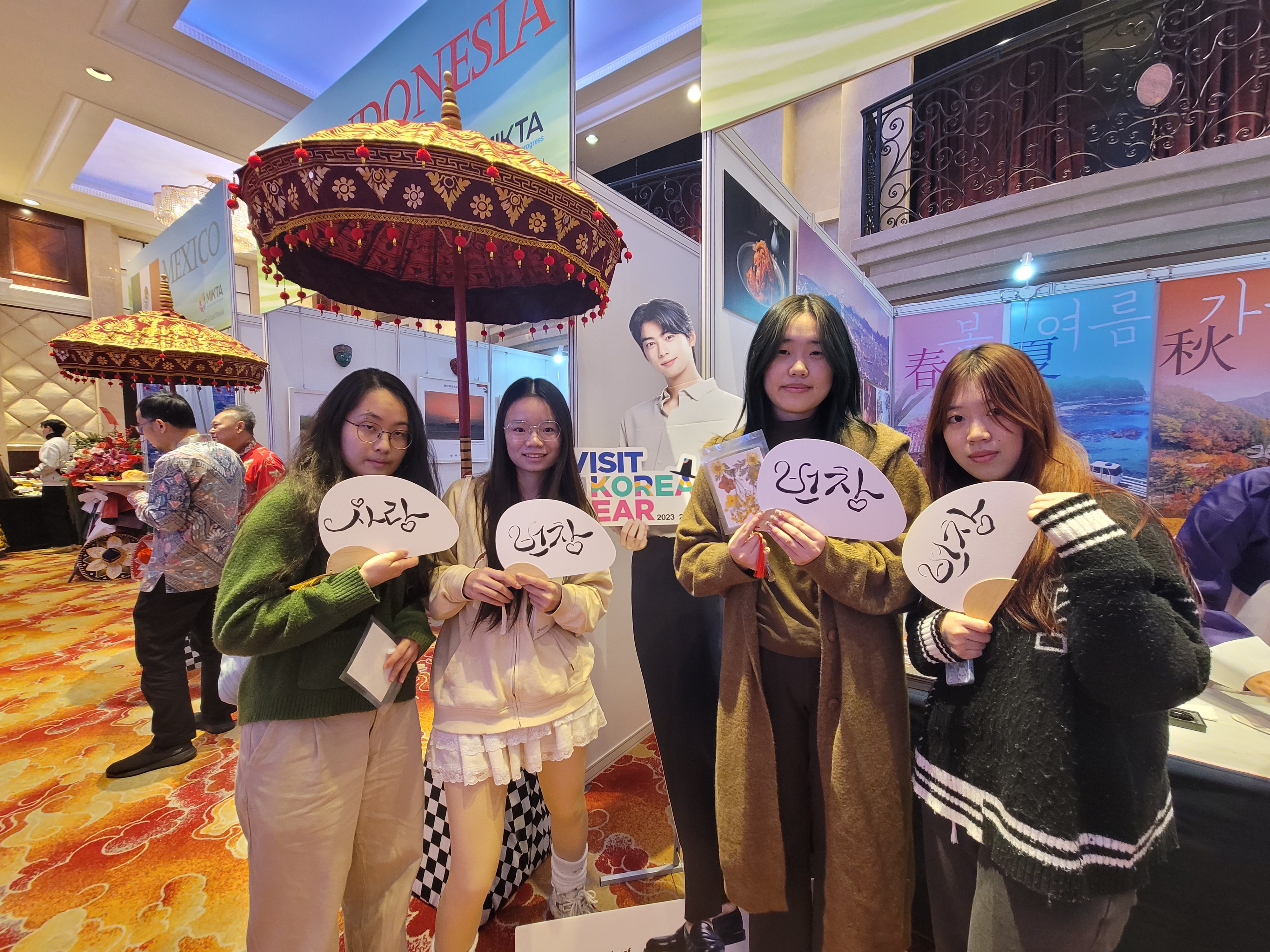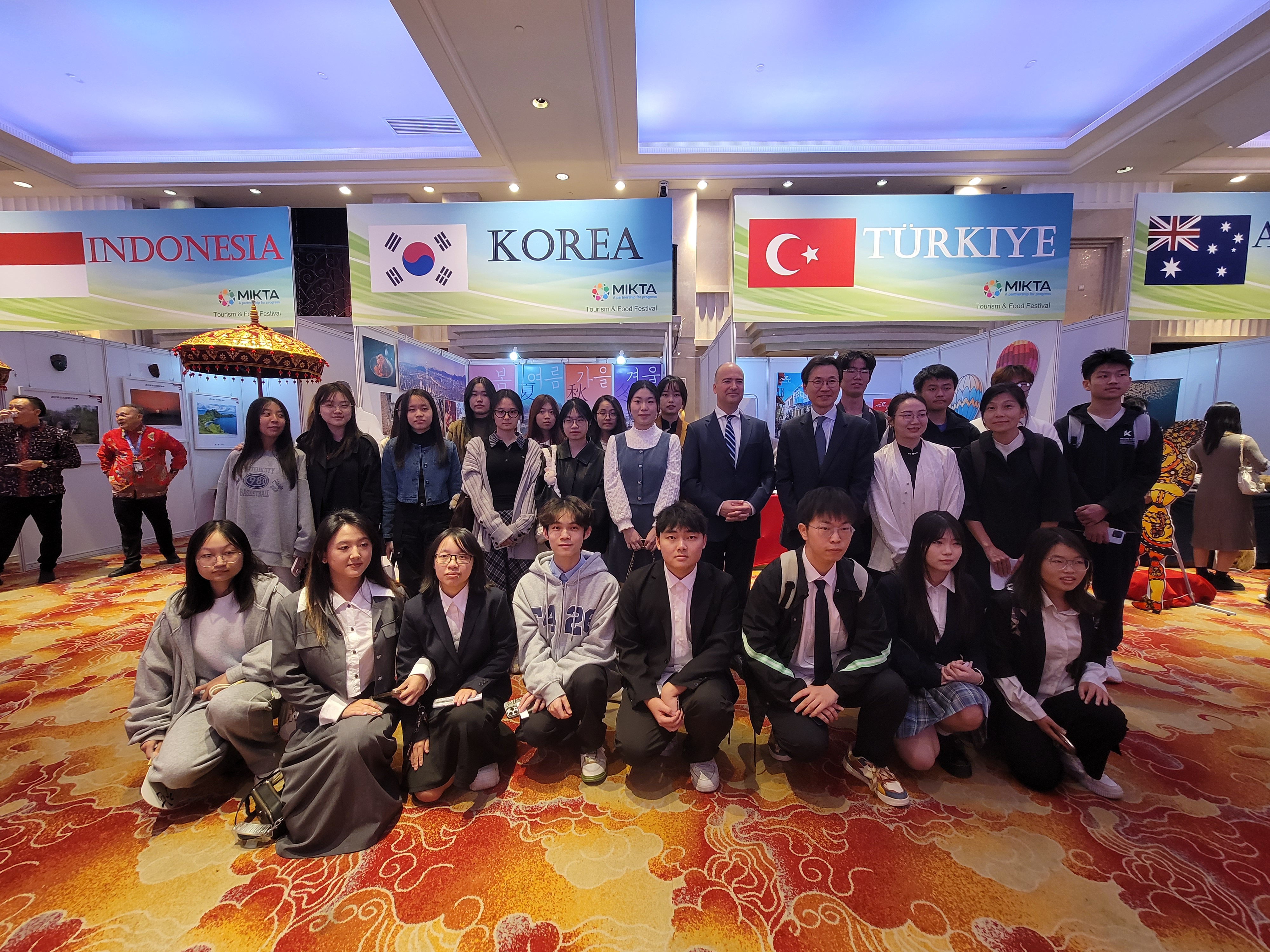 2024年11月28日下午,由MIKTA成员国(墨西哥、印度尼西亚、韩国、土耳其和澳大利亚)各驻穗总领事馆联合举办的MIKTA美食旅游节活动在广州阳光酒店举行。公司土耳其语专业负责人黄嘉玲及外教马雨洁(Tugce Sargin Ma)和朝鲜语系外教裴允卿(배윤경)带领两专业员工应邀出席了该活动。