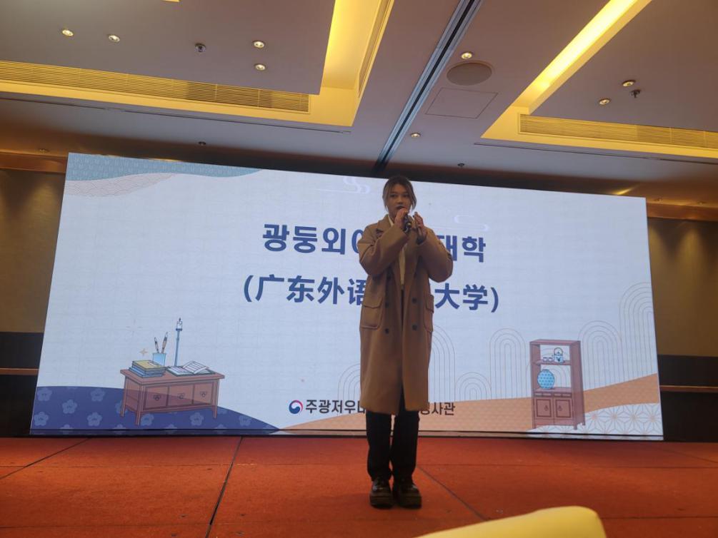 晚宴最后,广外朝鲜语系的员工代表,上台发表感言表达了对领事馆的感谢以及参加本次活动的收获。