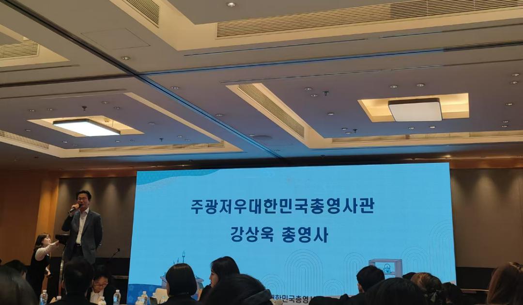 活动由驻广州韩国总领事馆主办,广州开设朝鲜语专业的四所高校师生共同参与。晚宴伊始,韩国驻广州领事馆总领事姜相旭发表讲话,表达了对参加晚宴师生的欢迎,并希望以后能多举办此类交流活动,以增强中韩间的友好情谊。