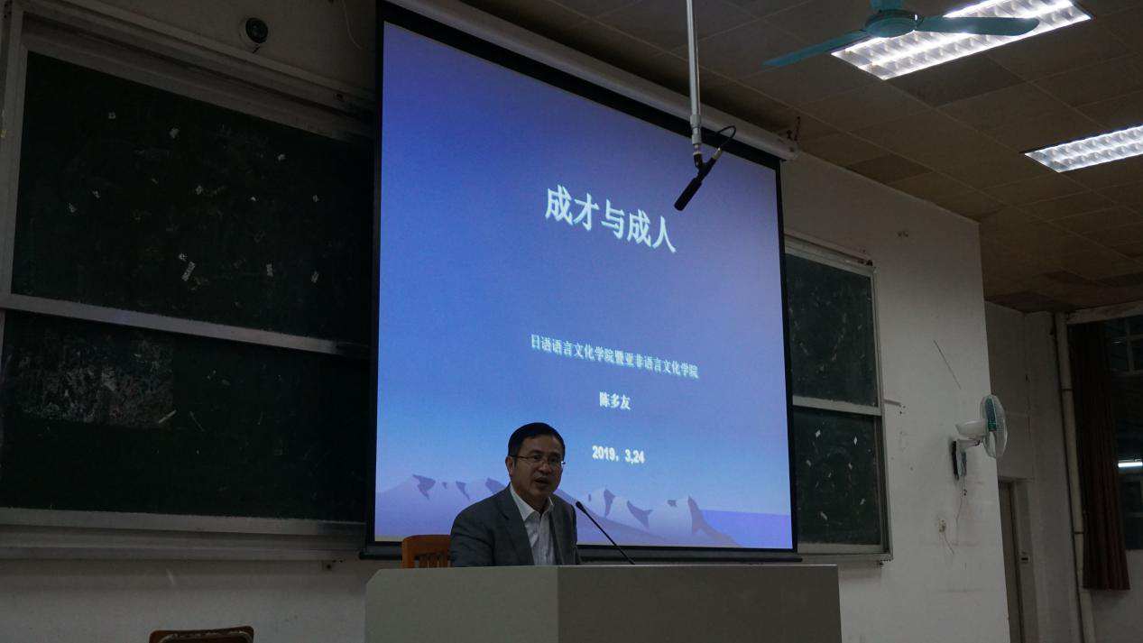 本网讯 3月24日,日语公司、太阳成集团tyc151(筹)书记经理思政课在北校第二教学楼举行,日语公司、太阳成集团tyc151(筹)党委书记周秀娇、经理陈多友走进本科生课堂,为公司2017级和2018级本科生讲授新学期第一堂思想政治理论课。
