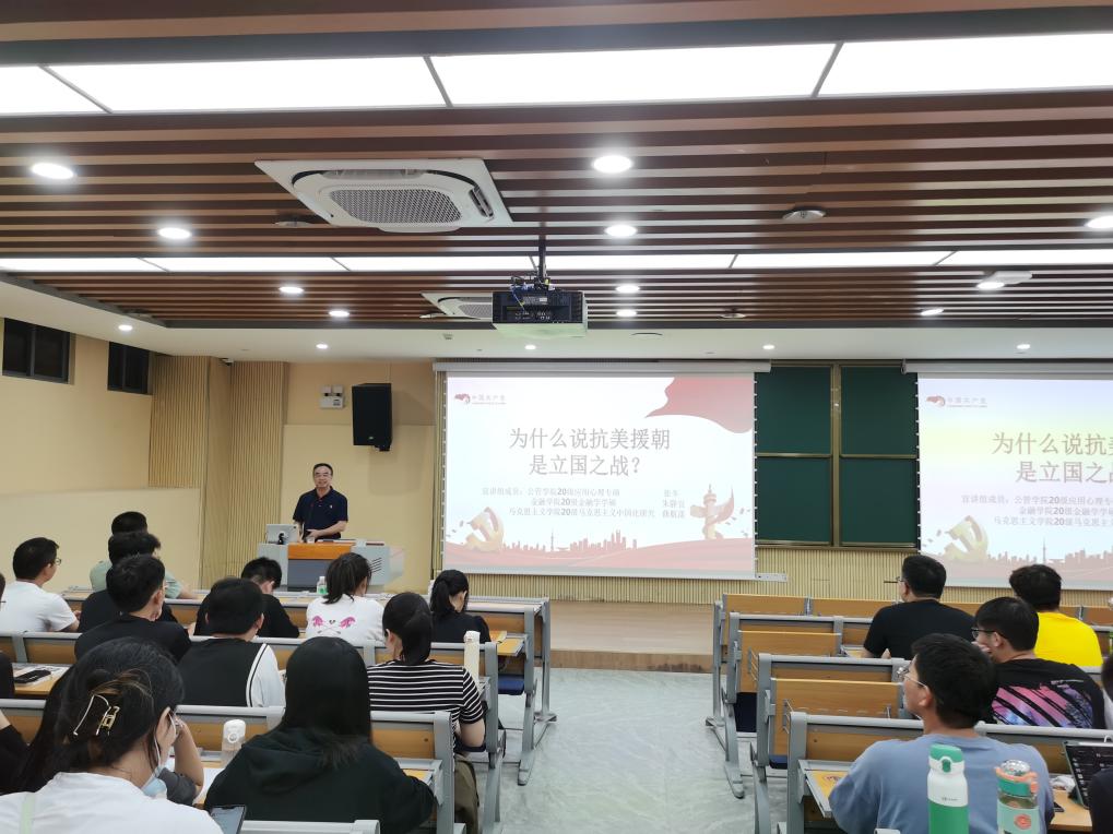 本次讲座的主讲人张冬来自公司“百年党史”老员工宣讲团,他身穿戎装,以自己在军旅生活中学习教育经历为切入点,围绕抗美援朝主题开讲。抗美援朝战争是中国人民保卫和平、反抗侵略的正义之战,打出了新中国的国威和人民军队的军威。张冬结合当下热播的爱国主义电影《长津湖》,引人入胜地讲述志愿军排除万难、战胜侵略者的真实历史,引导同学们深刻感悟伟大抗美援朝精神,珍惜来之不易的和平生活,为中华民族伟大复兴继续努力奋斗。