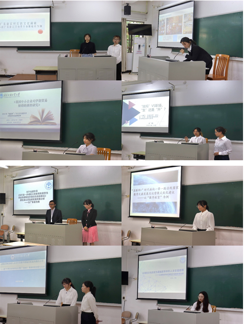 本次大赛的八支参赛队伍代表分别展示了他们的调查报告成果。在阐述过程中,代表们用语准确严谨,叙述详略得当,认真分析研究问题,基于自身研究角度找出社会所面对的问题,根据自身设想提出了多种兼具针对性及实用性的解决方案。此次参赛队伍的选题时代性鲜明,创新性突出,涉及“新农村建设”、“文化交流”、“中伊贸易”、“三胎政策”、“双减政策”、“传统文旅转型”、“算法控制”等,展示了参赛各组的不同风采。