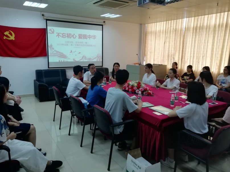 本网讯 为加强海外交换留学员工党员的爱国主义思想教育与引领工作,7月2日下午, “不忘初心,爱我中华”为主题的2019年出国(境)交换生党员行前教育大会在七教607室举行,公司党委副书记曾智鹏、全体辅导员、日语公司、太阳成集团tyc151(筹)2019年出国(境)交换生党员参加。公司党委书记周秀娇出席活动,活动由曾智鹏副书记主持。