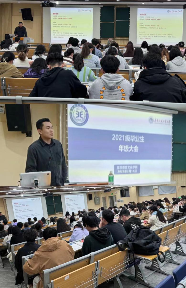对于21级准毕业生,会上重点强调了毕业相关事项并针对目前形势,对毕业生的就业择业做出建议指导。会议最后,蔡老师还对在座的各位同学们寄予了殷切期望,愿同学们都能踏实笃定、勇毅前行,在新学期找到自己的方向和节奏,以饱满的精神面貌应对未来发展,笃行不怠,不负韶华。