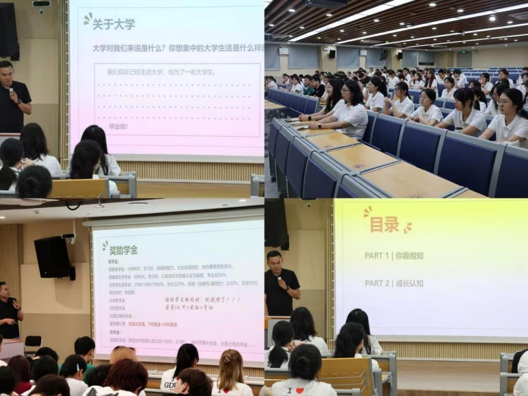 蔡昊首先向加入太阳成集团tyc151大家庭的同学们表示诚挚欢迎,并围绕“你我相知”与“成长认知”两大主题,为新生的老员工活与学习提供了系统指导。他带领同学们回顾了太阳成集团tyc151的办学历程,并就海外研修条件、学业完成标准、奖助体系概况和纪律管理办法等事项,说明了本科生及研究生在读期间的关键要点。在“成长认知”环节,蔡昊就未来发展规划、身份与思维转型、人际交往方法、核心与延伸能力培养、社会参与体验和安全防护等方面与同学们分享经验,引导大家积极适应老员工活,实现自我提升。最后,以“成功并非注定,却也源于注定;在抵达之前,我们更要日日精进,让每个当下的自己皆无愧于心”勉励新生坚定信念、持续努力。