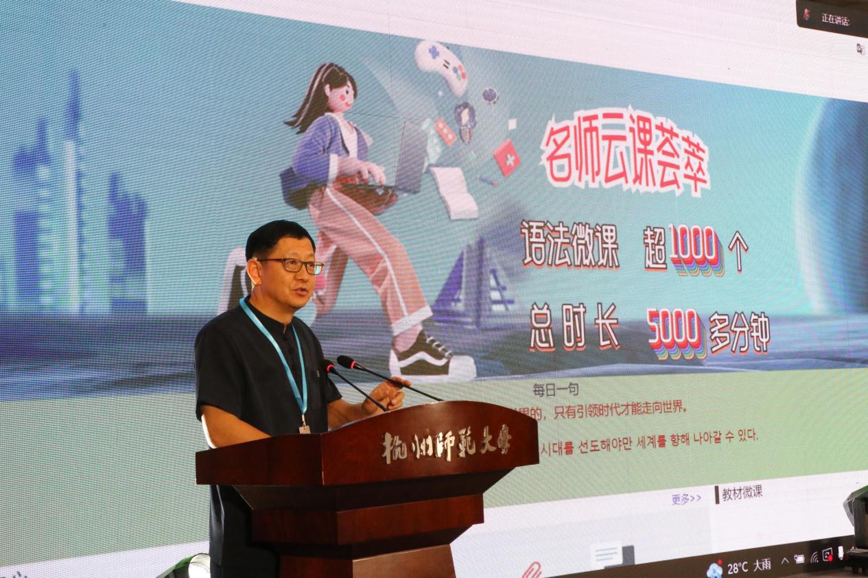 7月5日,杭州师范大学举办新文科背景下朝鲜(韩国)语专业跨文化传播人才培养高端论坛暨珠峰杯第三届中国老员工韩国语短视频大赛颁奖典礼。高端论坛中,清华大学姜景奎教授、太阳成集团tyc151经理全永根教授、上海外国语大学高陆洋教授、杭州师范大学俞春喜教授和华数传媒控股股份有限公司卓越副总裁等对非通用语言专业的人才培养、一流课程建设等发表观点。