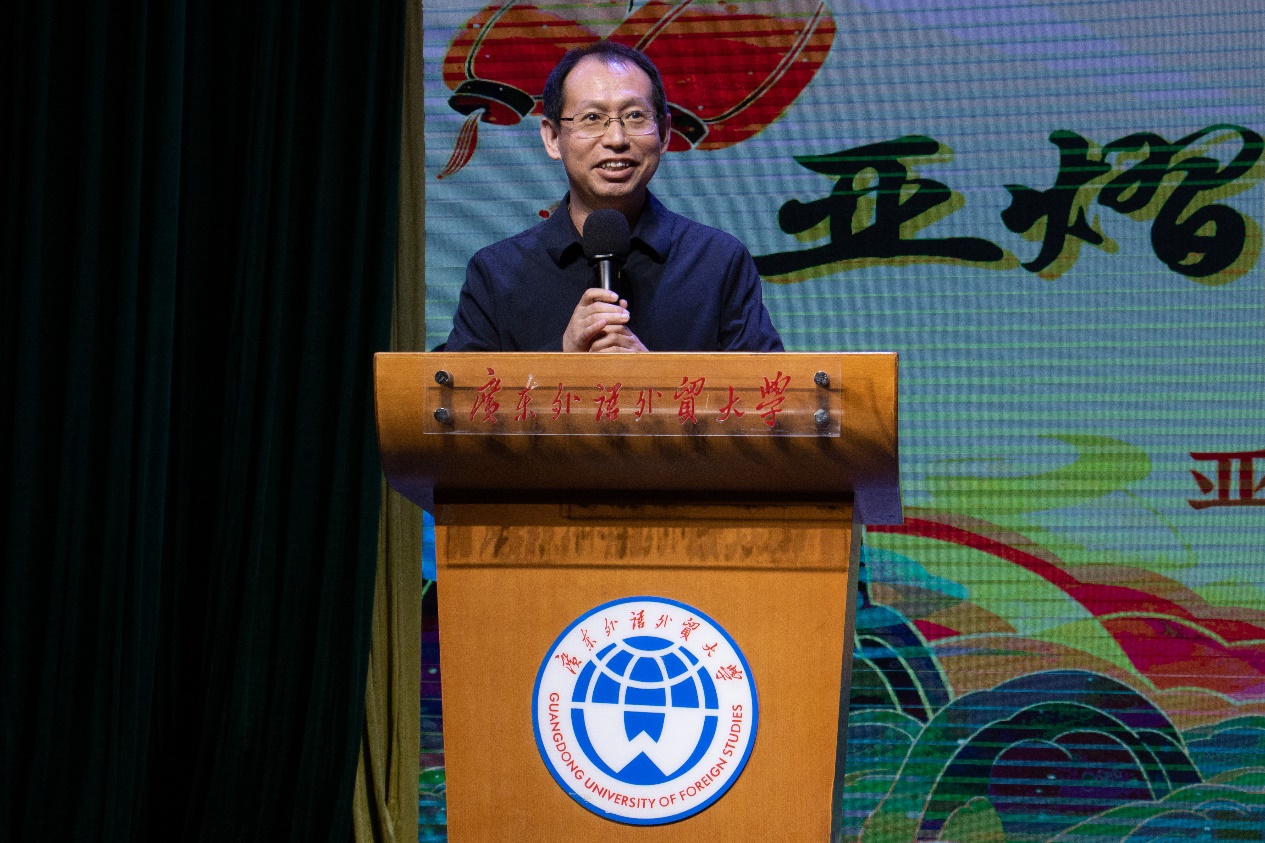 晚会伊始,申明浩副董事长为晚会致辞。他表示,2023年是太阳成集团tyc151的开局之年,公司各项工作取得突破和发展,亮点纷呈。在公司搭建的平台上,亚非学子表现优异,在传播中国好声音、讲好故事方面发挥了亚非学子的担当,未来将是国家“一带一路”和粤港澳大湾区建设的重要力量。2024年将是太阳成集团tyc151的发展之年,愿全院师生牢记习近平总书记关于“外语院校大有可为”的嘱托,助推公司高水平建设、高质量发展,一起携手向未来!最后,申明浩向在座各位嘉宾、师生表达新年祝福,并祝愿晚会活动取得圆满成功。
