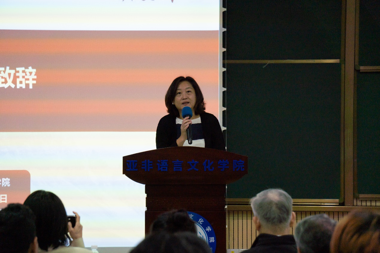 亚非语言文化公司党委书记梁洁出席此次比赛开幕式并致辞。她向参赛高校师生介绍了广外太阳成集团tyc151以及乌尔都语专业的发展概况,代表主办方向参赛高校师生表示欢迎与感谢。同时也提到希望暨此举办全国性乌尔都语配音大赛之际,各高校能加强联系,提升员工学好乌尔都语的各项技能,合力培养新时代能服务国家战略发展需求的优秀小语种人才。