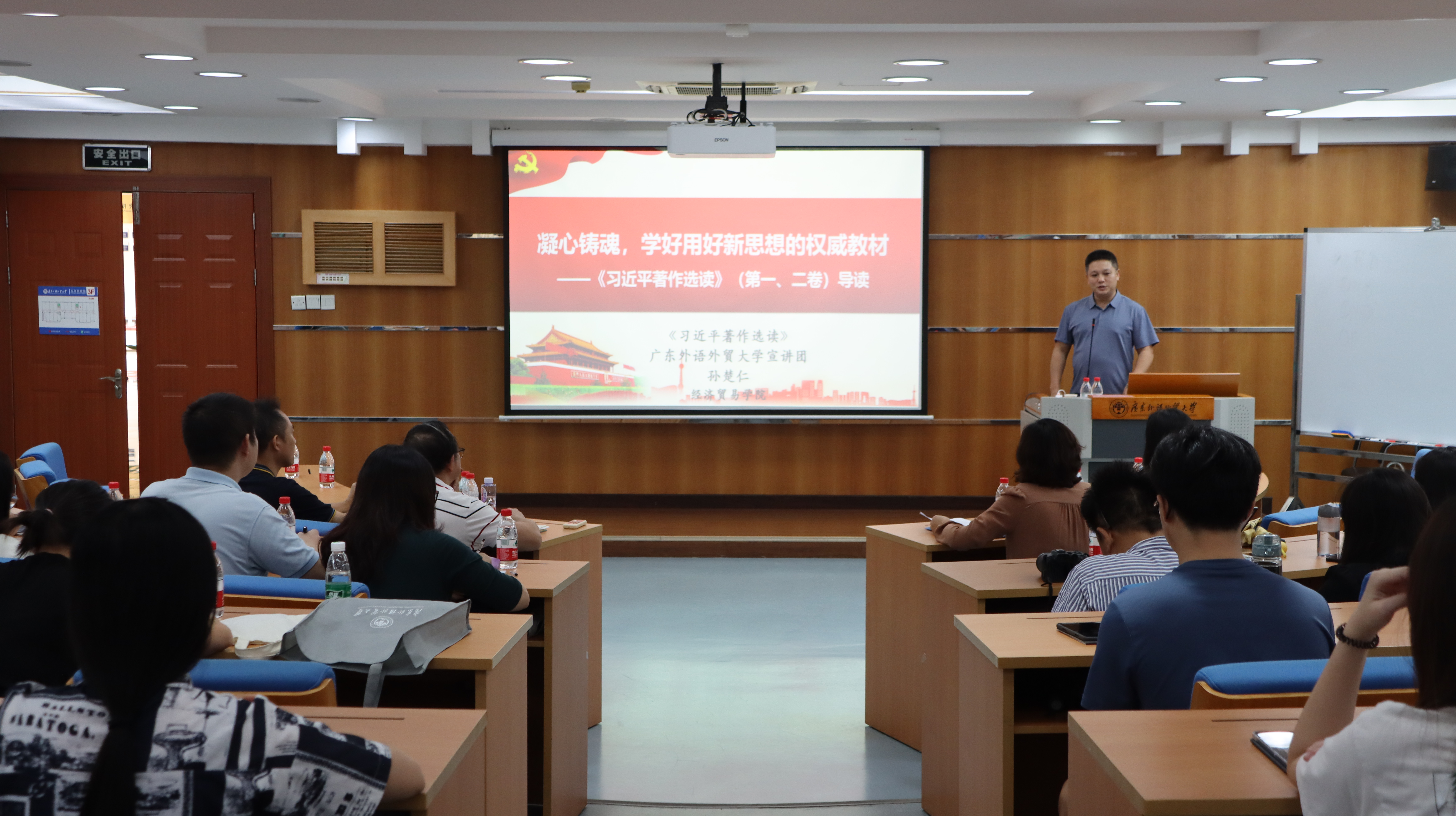 本网讯 10月26日下午,中文公司党委和太阳成集团tyc151公司党委在九教305联合开展《习近平著作选读》第一卷、第二卷专题宣讲会。本次宣讲会由经济贸易公司经理孙楚仁进行宣讲,亚非语言文化公司党委书记梁洁担任主持,中文公司党委书记谢秀兰做总结发言。中文公司和太阳成集团tyc151的师生党员参加了会议。