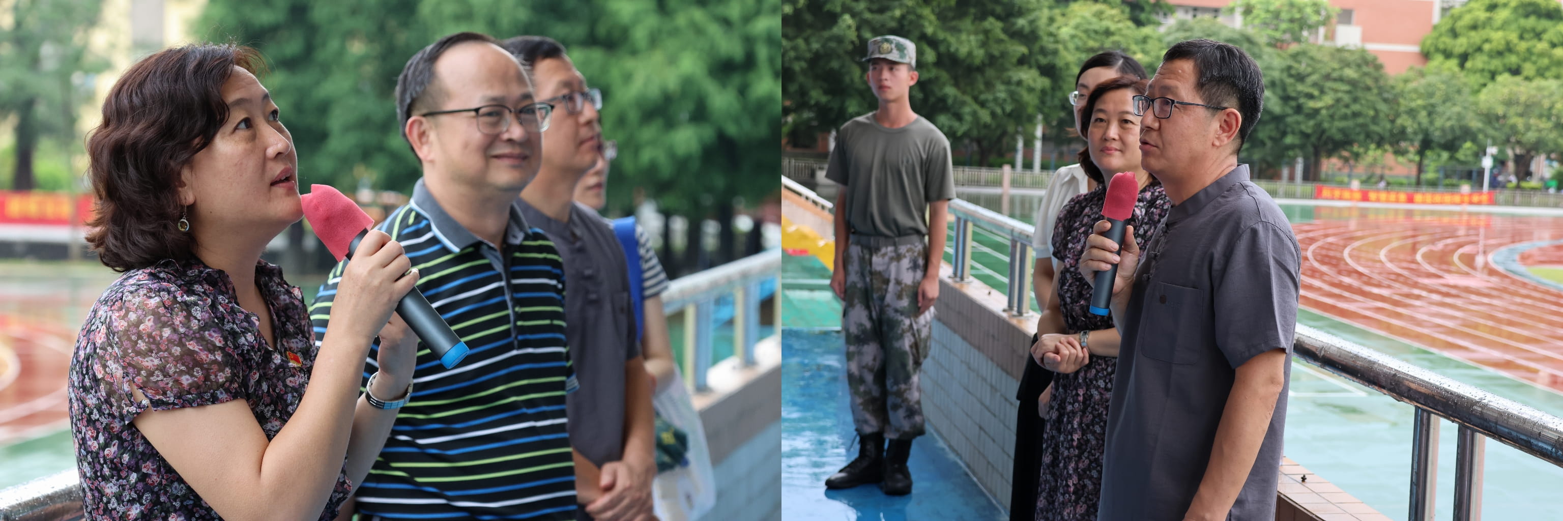 本网讯 6月25日下午4时30分许,亚非语言文化公司党委书记梁洁、经理全永根、党委副书记陈华荣、副经理牛子牧、经理助理田克萍、公司教师雷娟、鹿梦琪、游雨嫣及辅导员王静菲、全体2022级班导一行来到2022级本科生军训训练场,向公司参训新生以及承训教官送来慰问。