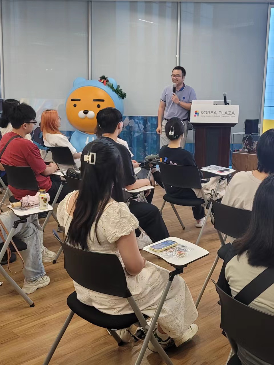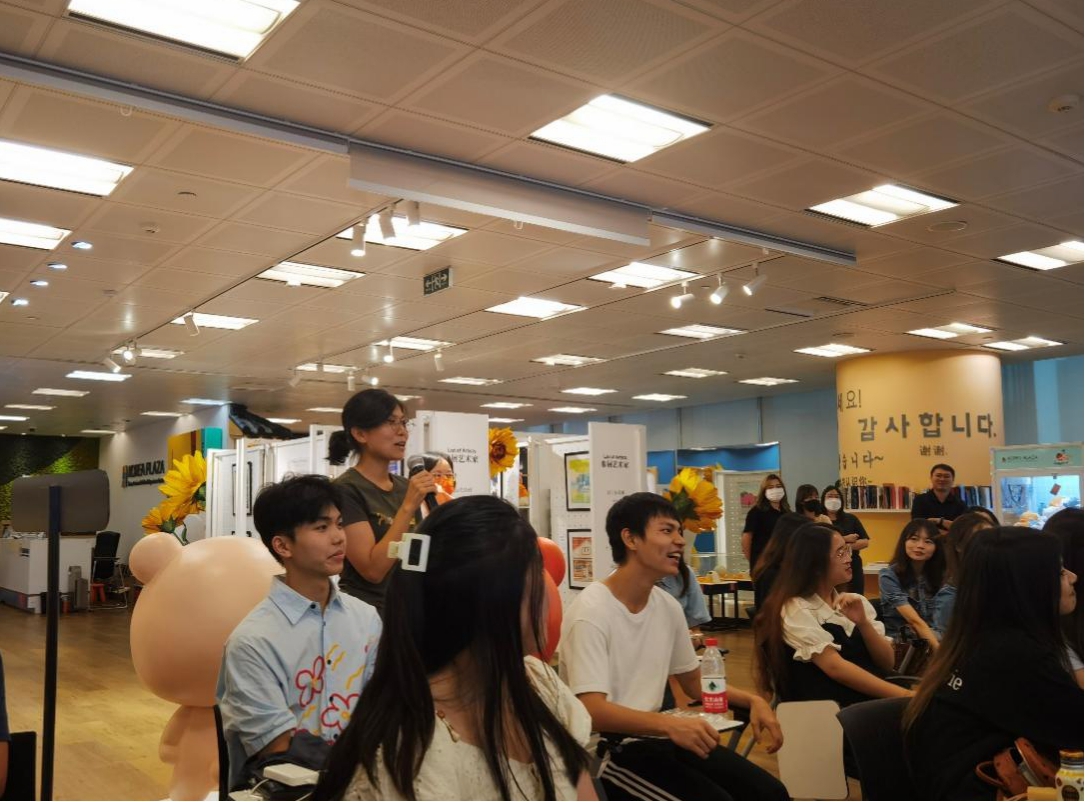 此外,本次参观活动还设置了一个特别的环节——邀请到了曾就读于公司亚非语言文学专业的研究生、现就职于旅游发展局的乔欣师兄来为朝鲜语系师生进行经验分享与答疑解惑。朝鲜语系的师生们积极提问、踊跃发言。而乔欣师兄也针对大家的疑问一一进行了解答。对于担忧未来发展的同学们,他也表现出了一种乐观主义的态度:“不必过于担心三五年后所发生的事情,当下最重要的还是提升自己”。在提问尾声,师兄和其他工作人员还分享了自己进入韩国旅游发展局工作的契机与面试经验,并鼓励在场的各位同学以后也可以把这个作为一种就业方向。