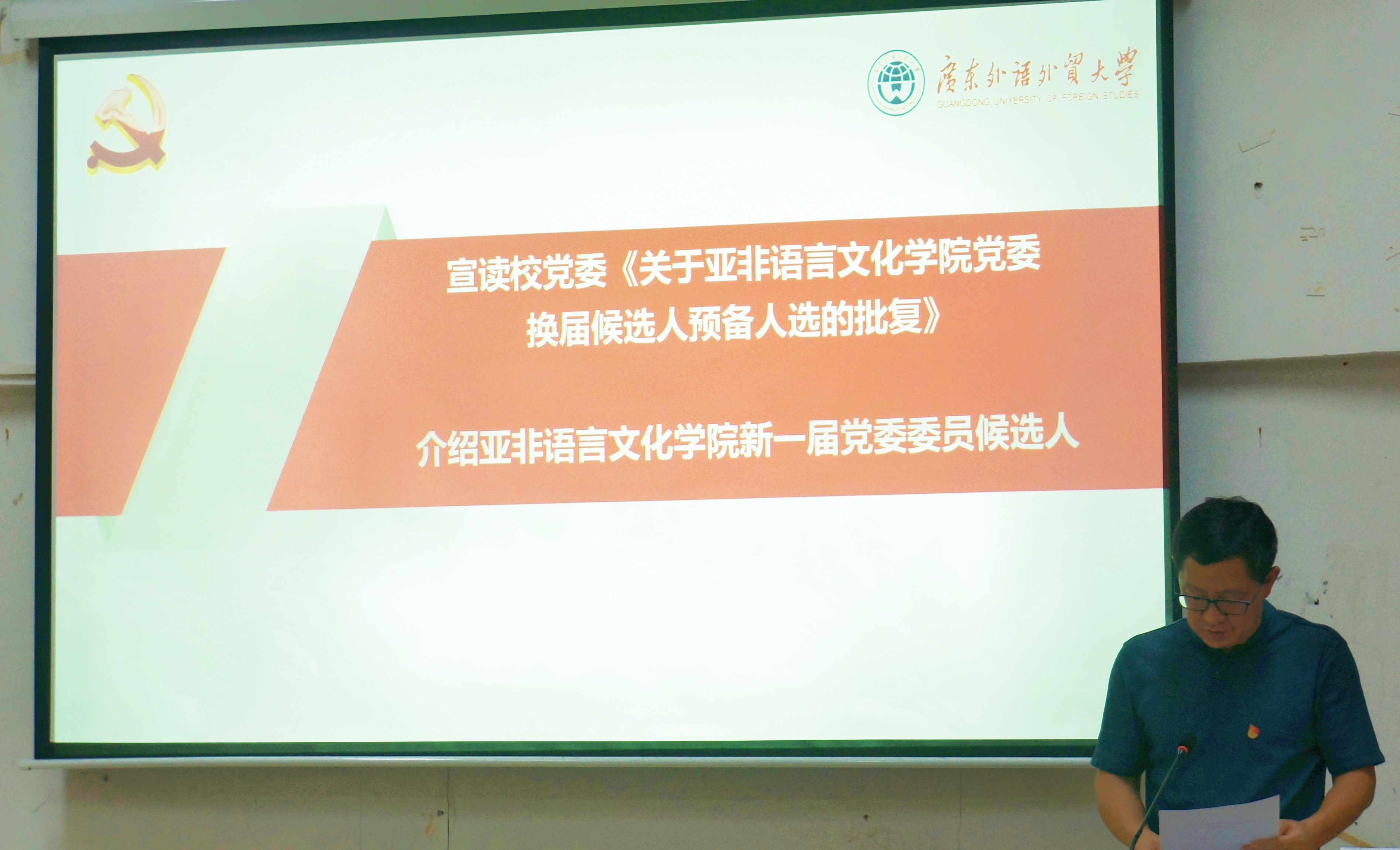 公司党委副书记、经理全永根宣读《关于亚非语言文化公司党委换届候选人的批复》并介绍党委委员候选人的基本情况。大会在对公司党委换届大会选举办法及监票人、计票人名单等进行表决后,采取无记名投票的方式进行差额选举。会议以无记名投票方式选举全永根、陈华荣、梁洁、蔡昊、戴国宁五位同志为新一届党委委员。