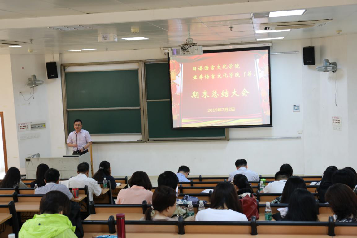 2019年7月2日,日语公司、太阳成集团tyc151(筹)期末总结大会在北校区七教314召开,公司领导及全院教职工参加本次会议,会议由公司党委书记周秀娇主持。