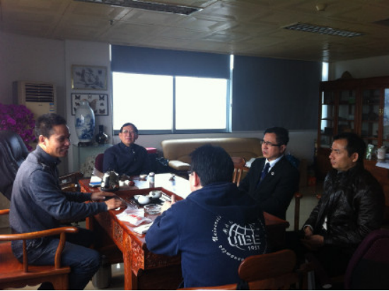 本网讯 2015年3月2日,东语公司经理陈多友、党委书记杨敏生、副经理张秀强,以及公司云山讲座教授洪诗鸿教授一行应广州赛特环保工程有限公司董事长郑永旭邀请,访问了该公司,双方就联手建立亚洲校园员工实习、实训基地事宜进行了充分磋商,并达成共识。