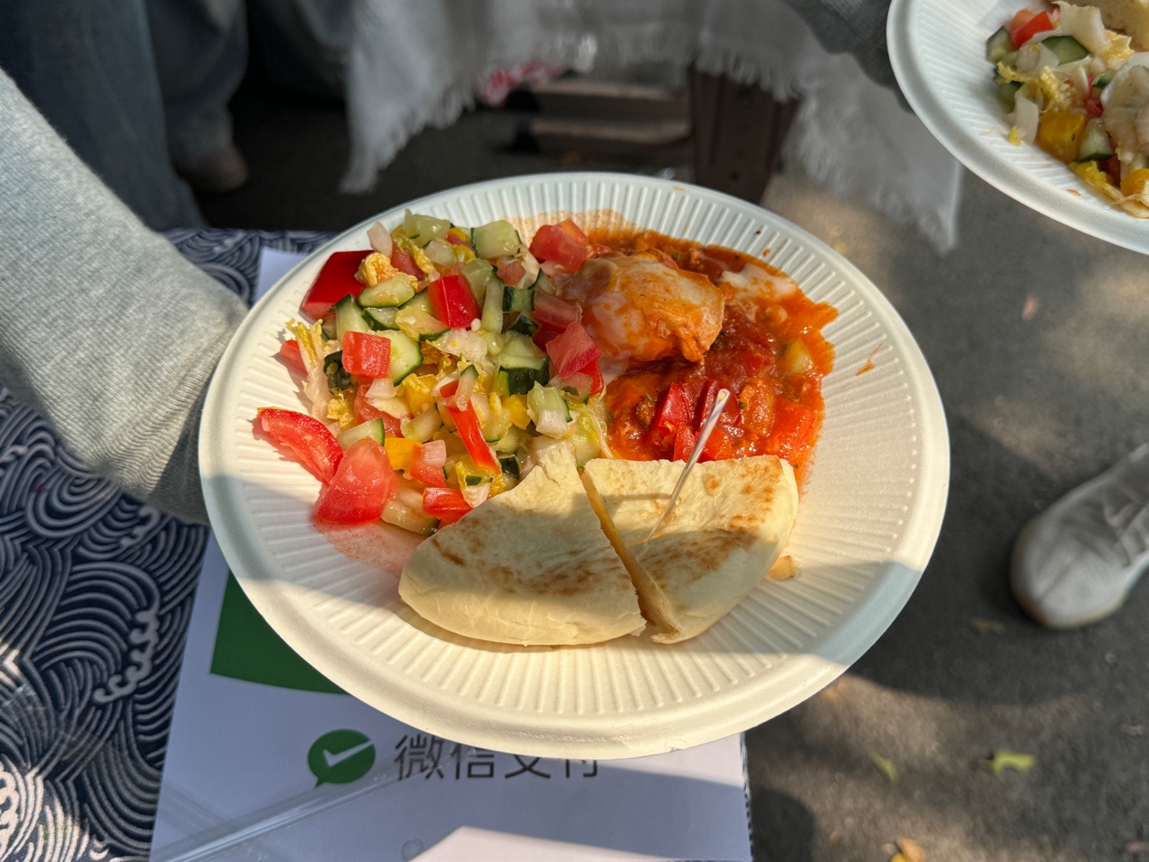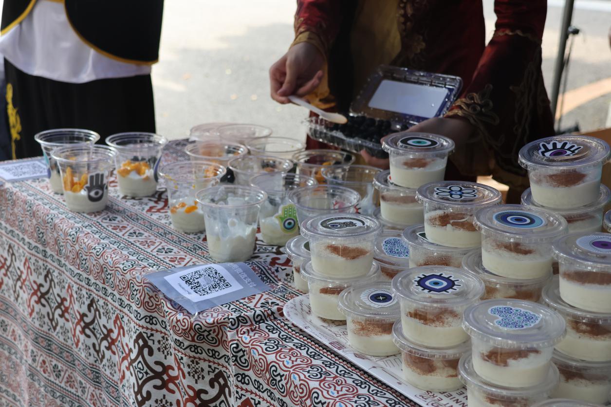 美食集市上,各语系员工身穿对象国的特色服饰,在摊位上精心准备对象国的经典美食,吸引来客前来品尝。有来自阿拉伯的沙瓦玛卷饼,伊朗的藏红花鸡汤,朝鲜族的辣炒年糕,坦桑尼亚的羊肉抓饭,土耳其的米布丁,巴基斯坦的灌汤脆球,希伯来语的法拉费丸子,印度的咖喱料理,孟加拉国的特色小吃拼盘等不同地域的美食。此外本次文化节还联合了中国文化摊位,共同欣赏中文书法,感受中华美食。不同的美食风味营造出文化碰撞的愉悦氛围,参与者沉浸在多元文化之中,领略不同文化的魅力。