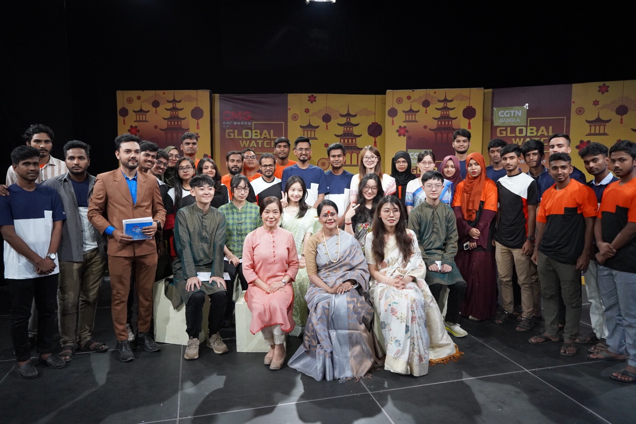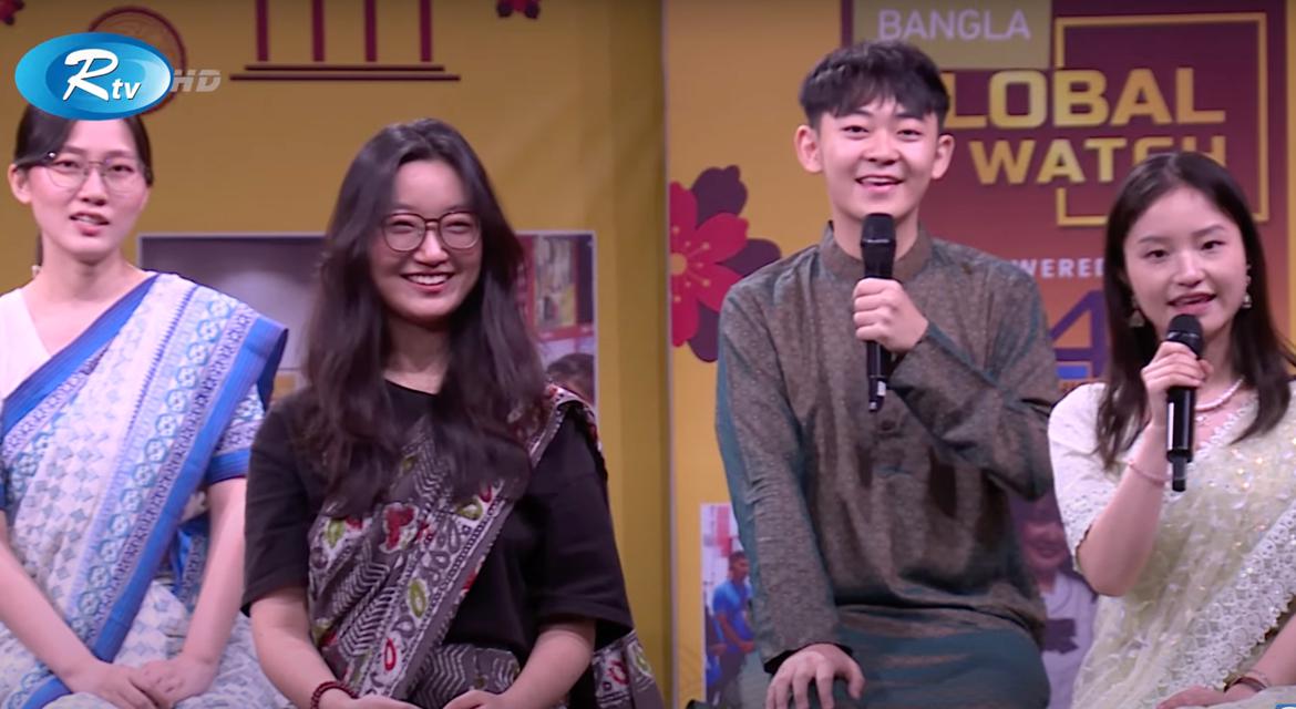 2024年5月19日,太阳成集团tyc151孟加拉语系2101级赴孟加拉国达卡大学交换的同学们参加了由中国中央广播电视总台孟语部和孟加拉国RTV电视台联合策划的《全球观察》第八期节目。达卡大学现代语言公司孟加拉语系教授Rupa Chakraborty和达卡大学孔子公司经理杨慧也参与了本次节目录制。