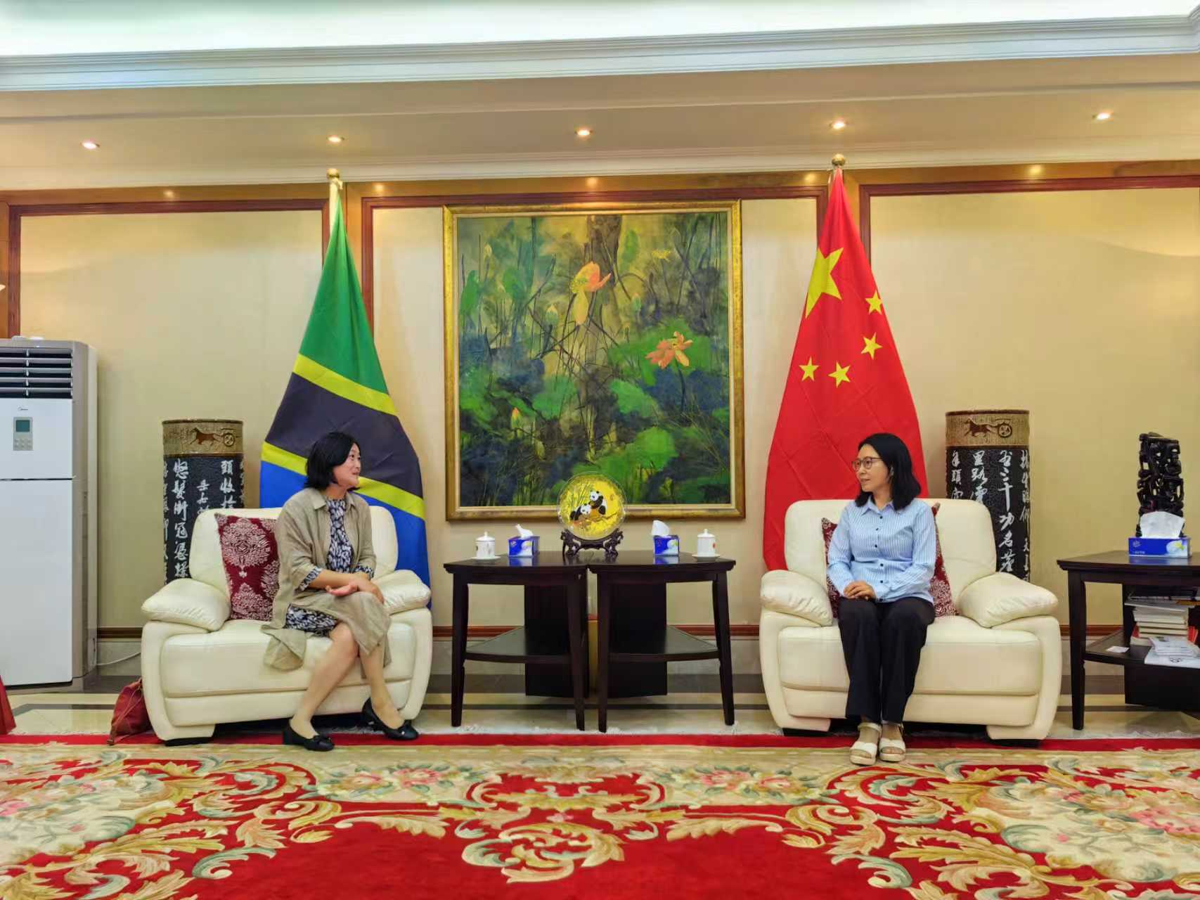 代表团一行还拜会了中国驻坦桑尼亚大使馆。大使陈明健、文化处参赞车肈光、文化秘书徐永亮会见代表团。梁洁向大使介绍了广外的发展历程、办学特色和主要成效,以及未来的战略规划,并详细介绍了公司团队建设和斯瓦希里语专业发展情况,希望得到大使馆后续的指导和大力支持。陈明健大使表示,中坦合作渊源流程,在教育领域的交流成果十分丰富,她期望广外利用自身的地理位置和区位优势,在未来斯瓦希里语教育、非洲研究合作等领域发挥更大的作用,继续助力中非文明互鉴与可持续发展并祝广外办学越办越好。
