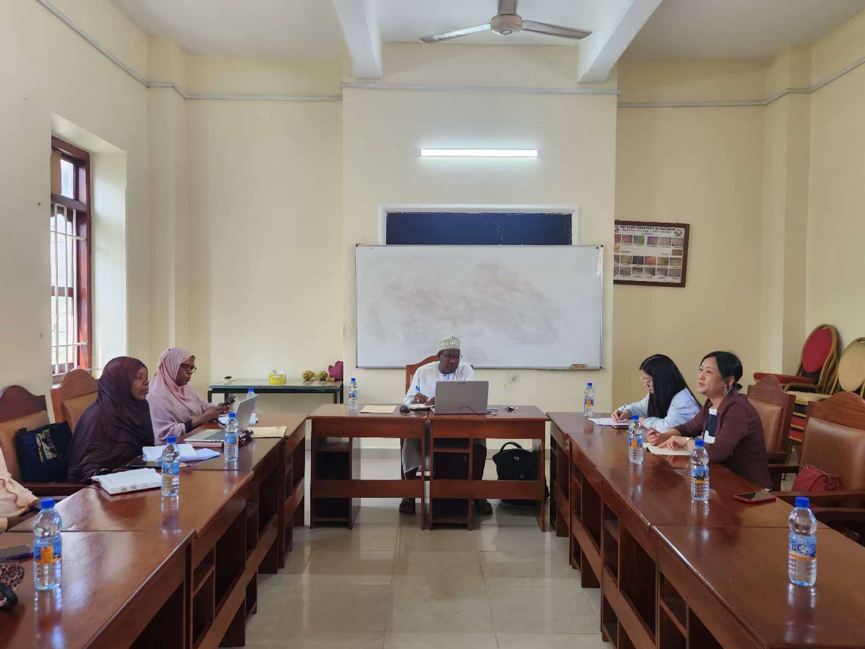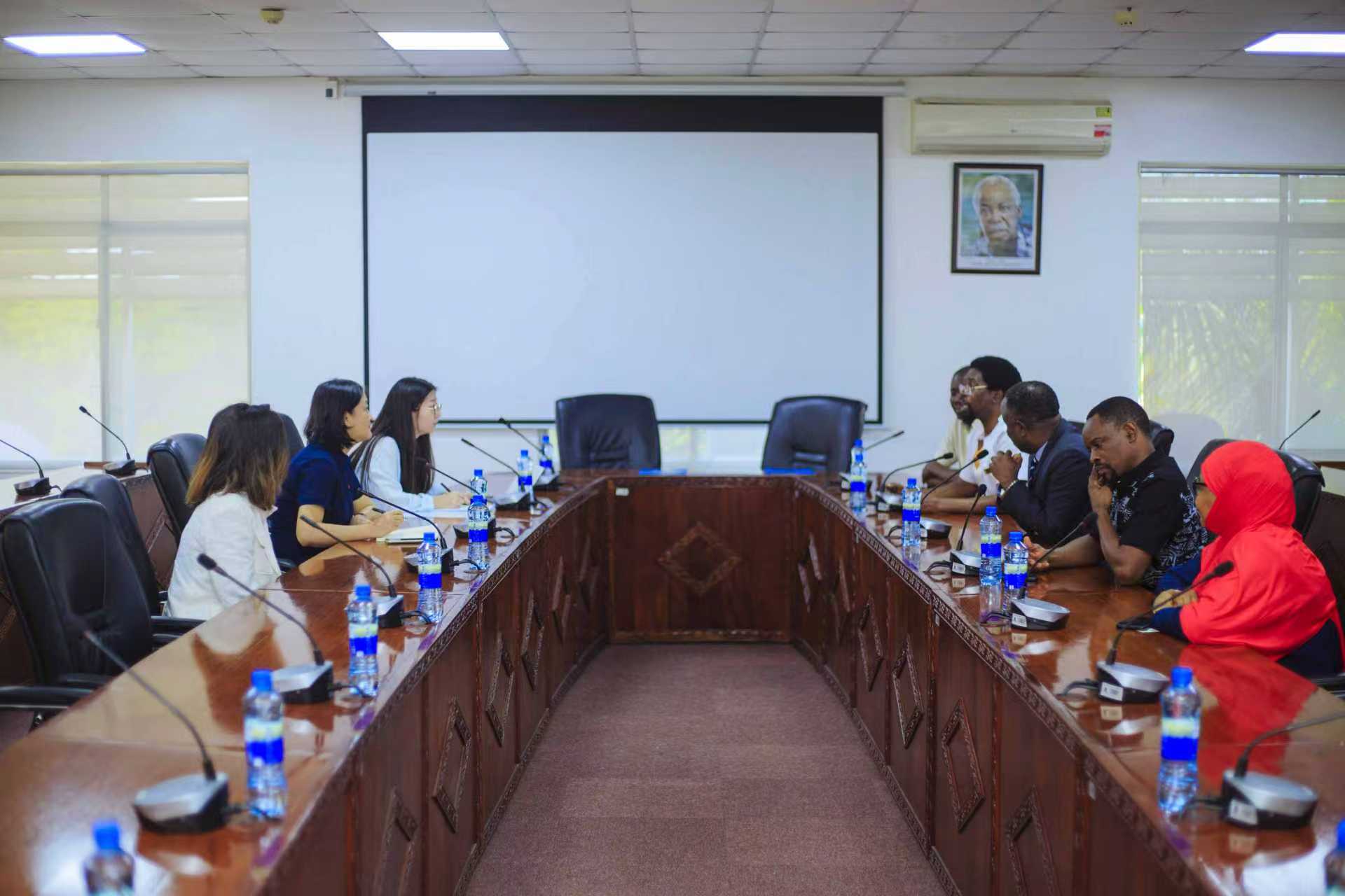 在访问坦桑尼亚期间,代表团应邀前往达累斯萨拉姆大学,与该校执行董事长威廉·阿南基谢(William Anangisye)、国际部、斯瓦希里语研究院等相关负责人参与座谈。双方在会上签署了校际交换生协议,并就团队联合培养、斯瓦希里语线上智能教学资源共享和语料库共建及AI教学平台开发展开讨论和具体部署。在拜访桑给巴尔国立大学期间,该校斯瓦希里语及外语公司经理阿布巴卡·马卡梅·法基(Abuubakar Makame Fakih)、斯瓦希里语系、对外斯瓦希里语教学系和外国语系等相关负责人参与座谈。双方就各自公司、公司以及专业的情况进行了详细介绍,并达成校际合作协议签署意向。此外,双方在斯瓦希里语专业本科教学、研究生联合培养等合作领域进行深入探讨。