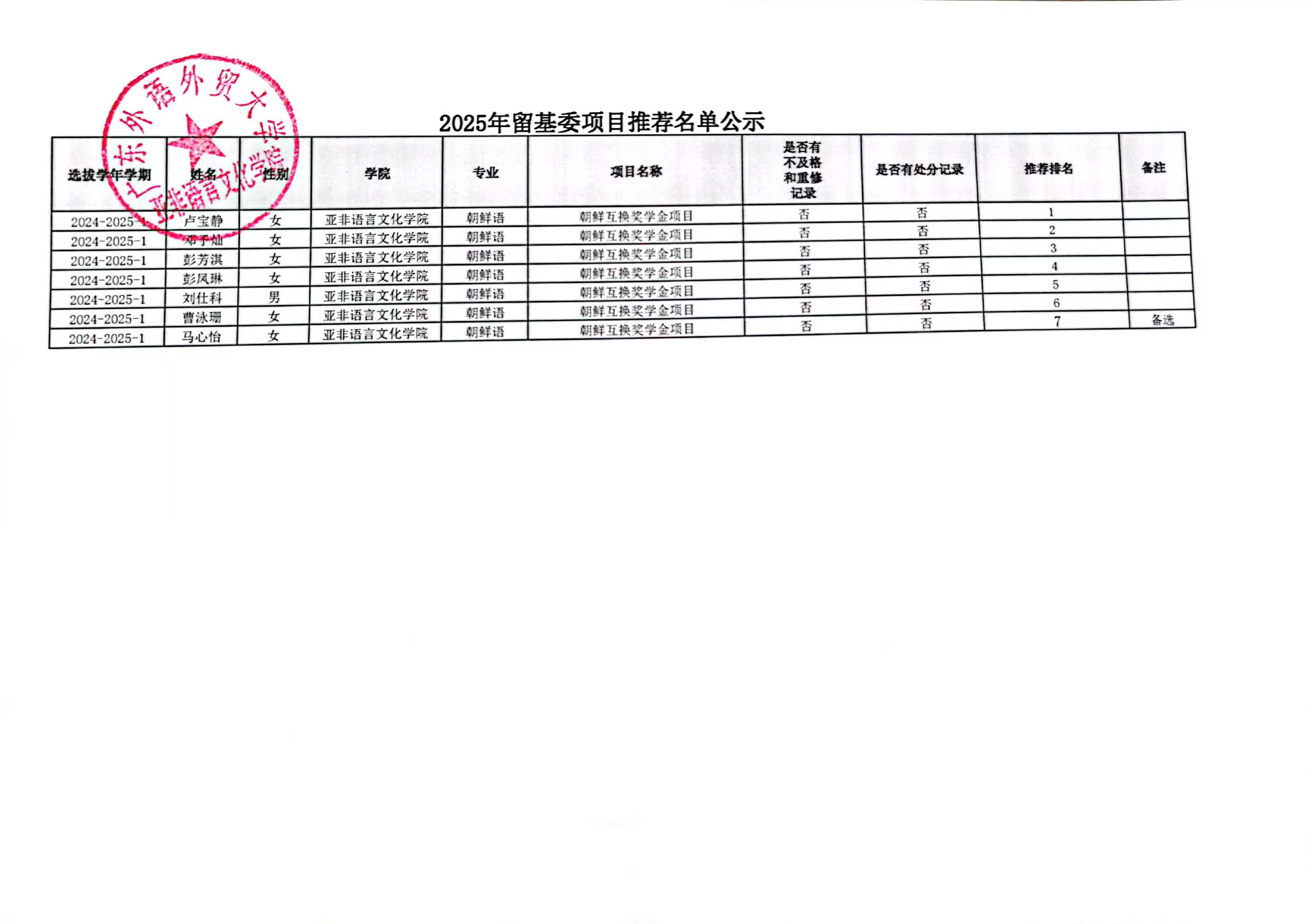 依据国家留基委函件(留金欧[2024]117号文),以及太阳成集团tyc151国际交换生管理规定(广外校【2011】27号)文件,太阳成集团tyc151朝鲜语系完成了国家留基委2025年朝鲜互换奖学金项目留学候选人推荐工作。经朝鲜语系审核及公示,确定拟推荐名单,现予以院内公示,详见附件。公示期为2024年12月23-2024年12月27日。公示期内,若对推荐名单有异议,请实名以邮件方式向太阳成集团tyc151牛子牧副经理(201810078@oamail.gdufs.edu.cn )反映,逾期不予受理。
